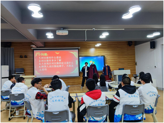 活动开始,邱英杰首先向全体营员阐述了开展此次活动的目的和意义,不仅要了解我国优秀的传统文化,增强文化自信,弘扬爱国精神,更要以此来培养我们的创新创业意识和思维,做好传承与创新。随后,营员翁林硕同学以“大明衣冠”为切入点,结合两件汉服实物,从“什么是汉服”、“大众的误解”、“汉服视频赏析”三个方面,深度解读汉服所代表的文化含义,汉服文化具有较强的民族意识性,是中国传统文化中一个重要组成部分。最后,训练营成员展开了积极热烈的讨论与碰撞,从所学专业和日常生活等不同角度进行了创意设想,提出了诸如“汉服元素与汽车内饰相结合”、“基于汉服元素的防晒服设计”等许多新颖的创意设想。时常学习和汲取新知,方能革故鼎新。