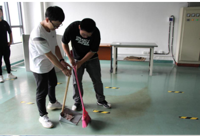 同学们首先来到分院实训办、公共实训基地等地,自发向实训老师们献上美好的祝福。下课后,大家纷纷到实训室内协助打扫实训设备、整理实训器材。在实训老师们的指导下,大家参照“5S”管理的标准,在协助整理的过程认真查找问题,纠正不够标准的操作,养成良好的操作习惯。老师们悉心的指导、精准的示范,令大家赞叹不已。随后,大家一同观看了纪录片《大国工匠》并进行了主题讨论。同学们表示,“工匠日”承载着全社会对工匠精神的尊敬和推崇,作一名文明有礼的高职学子,更要从自身点滴做起,心怀工匠精神,以实际行动礼敬工匠、学习工匠,技能报国。