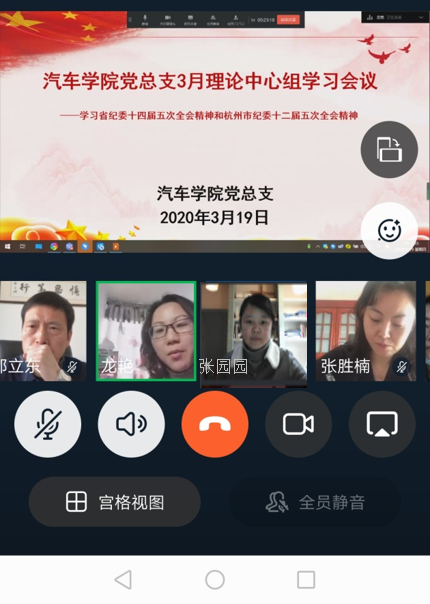 3月19日下午,汽车必赢线路检测3003no1利用钉钉召开理论中心组学习视频会议,学习省纪委十四届四次全会及市纪委七届四次全会精神,院长邵立东、副书记龙艳及全体必赢线路检测3003no1中层参加会议。会议由龙艳主持。