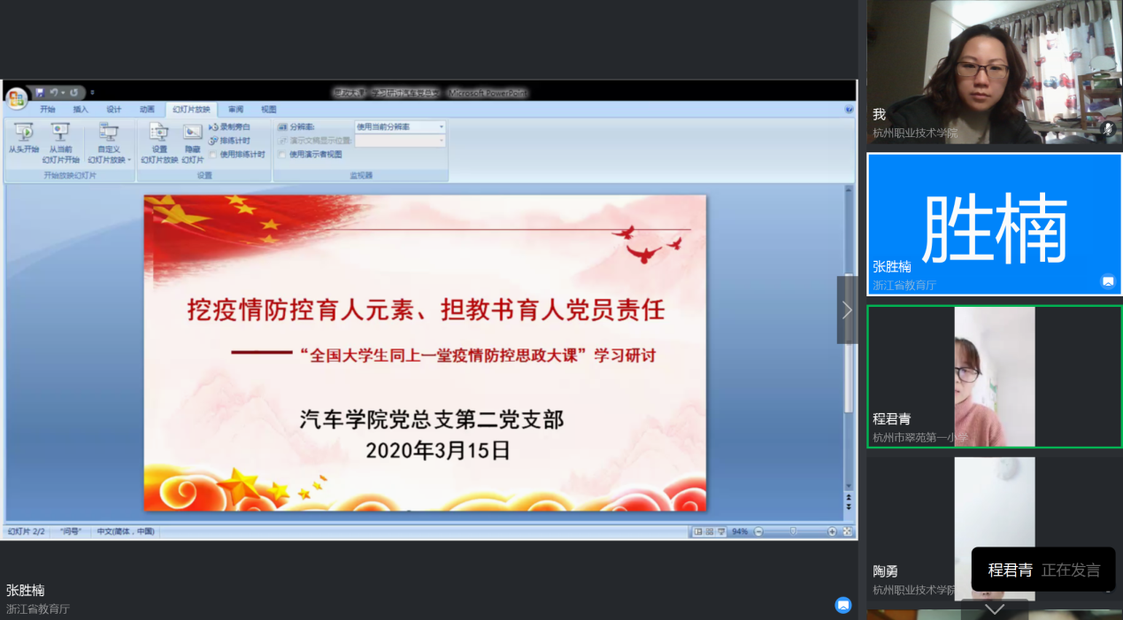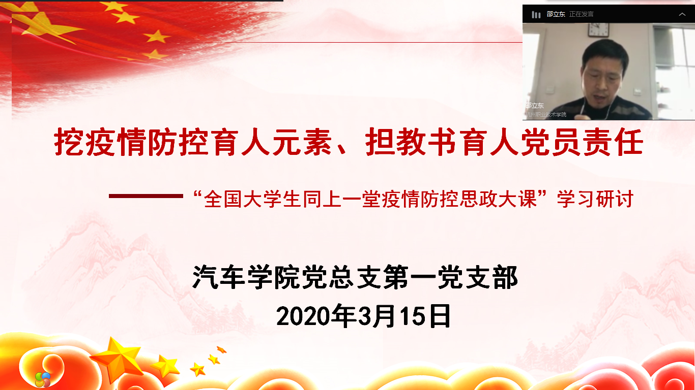 3月15日,汽车必赢线路检测3003no1全体党员师生以支部钉钉视频会议形式,开展以“挖疫情防控育人元素 担教书育人党员责任”为主题的线上主题党日活动。