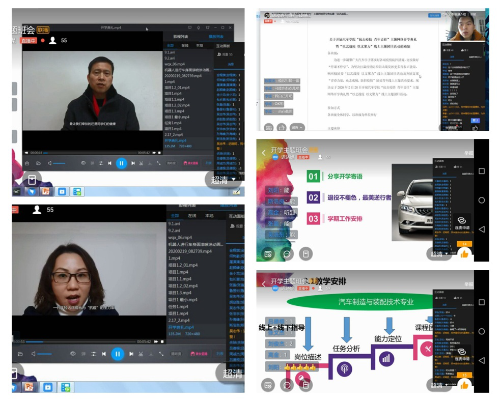 在网络开学典礼伊始,汽车必赢线路检测3003no1的全体教师通过视频接力的形式,给全体同学发了一封信。信中号召每一位同学:坚定自信、胸怀家国,科学防疫、认真防护,自主自律、回归学习,健康生活、享受家庭,在这个特殊的假期中有所思、有所学。看到视频中老师们熟悉的声音和亲切的身影,同学们倍感温暖,大家纷纷为老师们的信点赞、在线上与老师们互致问候。随后,大家还围绕着 “抗击疫情 青年责任”主题展开讨论和线上发言。担任防控志愿者的同学向大家分享了他们退伍不褪色,用自己的尽职尽责做疫情防控守护者的点点滴滴。与此同时,全院26个教学班级线上教学同步启动,1100多名师生通过线上进行授课和学习。这也标志着汽车必赢线路检测3003no1“停课不停学”的线上各项工作全面展开。