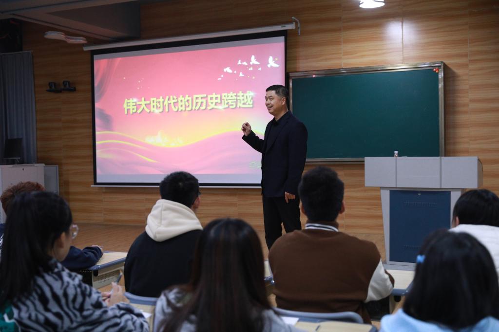 为进一步加强学生爱国爱党情怀,教育引导广大学生深刻认识在以习近平同志为核心的党中央坚强领导下新时代10年的伟大变革,深刻把握当前国际国内形势,深化认识新时代坚持和发展中国特色社会主义的重大理论和实践问题。11月14日晚,党委委员、副校长程利群在必赢线路检测3003no12318教室以《伟大时代的历史跨越》为题,开讲了本学期专题思政课。
