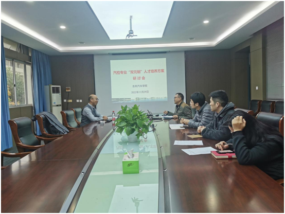 11月29日下午,必赢线路检测3003no1汽车检测与维修技术专业召开了“双元制”人才培养方案研讨会。宝爱捷(中国)汽车投资有限公司培训主管、资深培训师沈高平莅临指导,博世集团课程负责人段永山通过在线方式参与研讨,汽检专业负责人邱英杰与专业教师郑明锋、张羽林、徐亚丹参加研讨会。