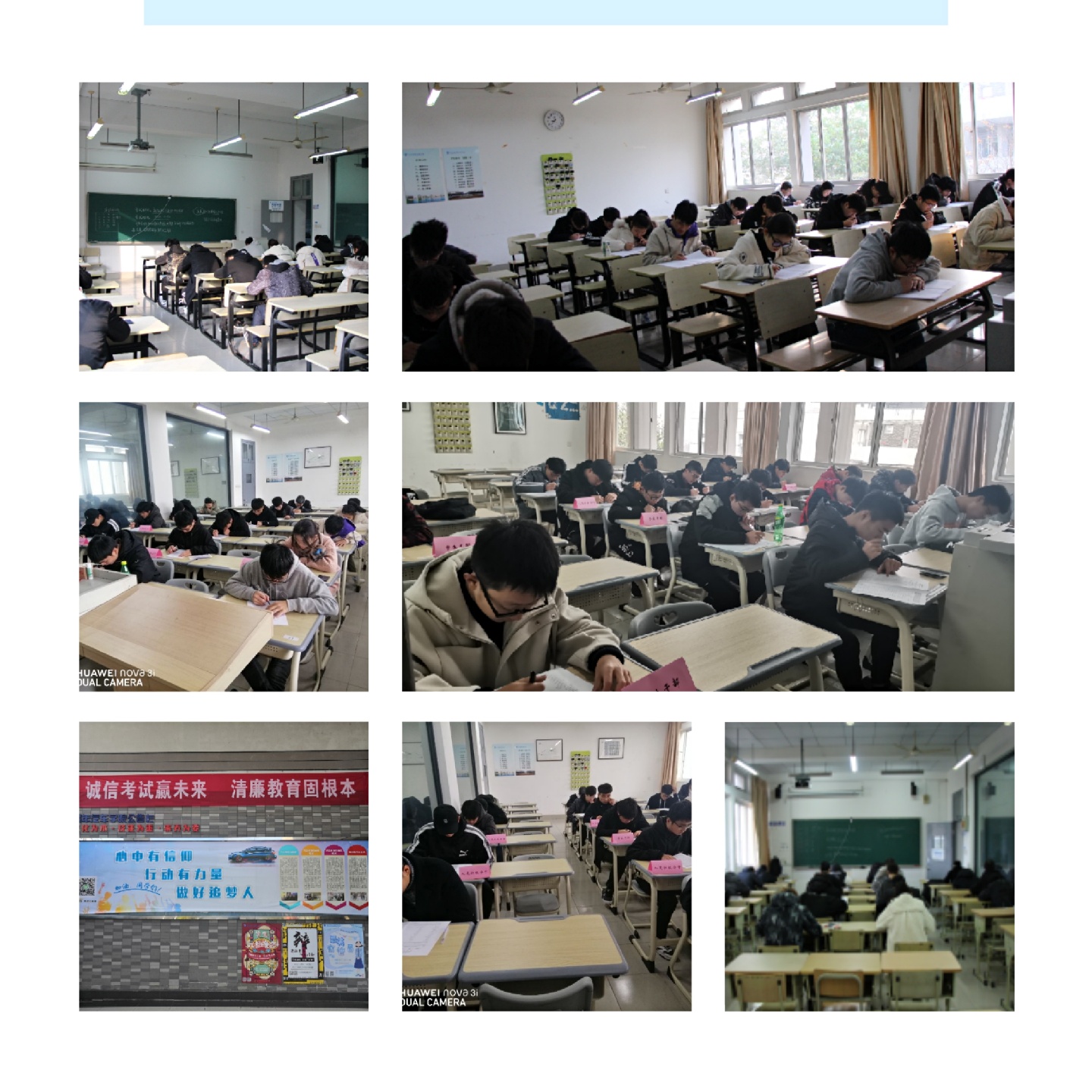 2019年12月30日上午和2020年1月2日下午,汽车必赢线路检测3003no1针对新能源汽车技术专业两个新生班《新能源汽车电工电子技术》和《高职英语》这两门课程的期末考试开设了8场诚信考试。考试期间,无人监考,秩序井然,效果良好。考试正式开始前,教科办统一启动考场实时监控录像,监考老师宣读诚信考场规则并发放考卷后随即离场,主考老师和1名监考老师在场外交替巡查考场情况。诚信考场内,设置班委团干和党员积极分子座位签,有效发挥班委团干和入党积极分子示范引领作用,确保每个同学从自身做起,严格要求,互相监督,确保考试公平公正,营造诚信竞争、廉洁自律的良好氛围。