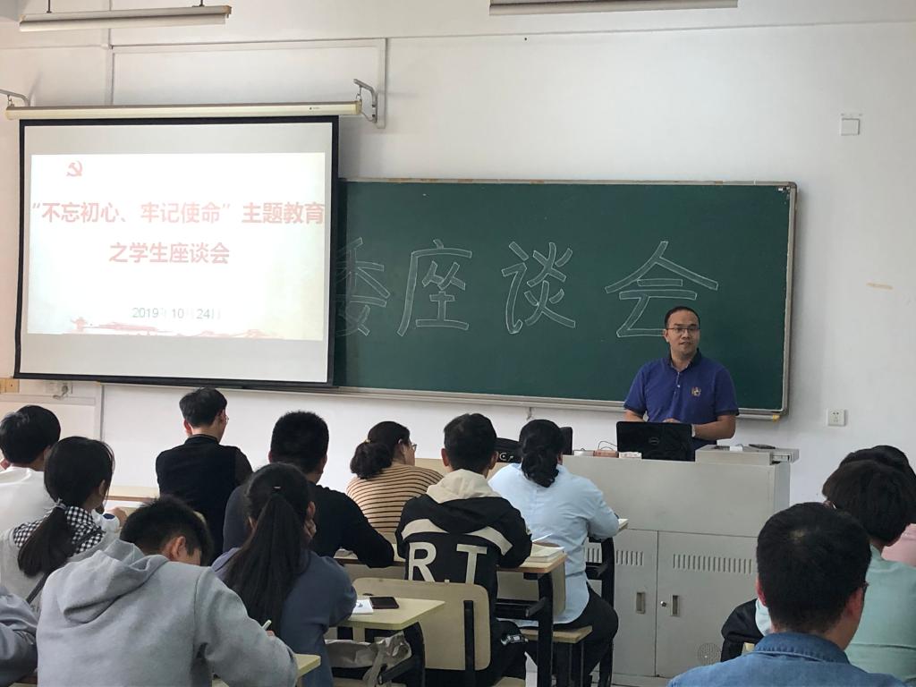 10月25日中午,在全校深入开展“不忘初心、牢记使命”主题教育的良好氛围下,汽车必赢线路检测3003no1党总支组织召开了分院学生座谈会,旨在了解教学一线实际情况,及时解答学生困惑。分院教科办主任兼党总支纪检委员李进斌、第一党支部党员胡思远老师和教科办王斌慧老师参加座谈会,座谈会由分院学生会学检部主持,共计20余名学生代表参会。