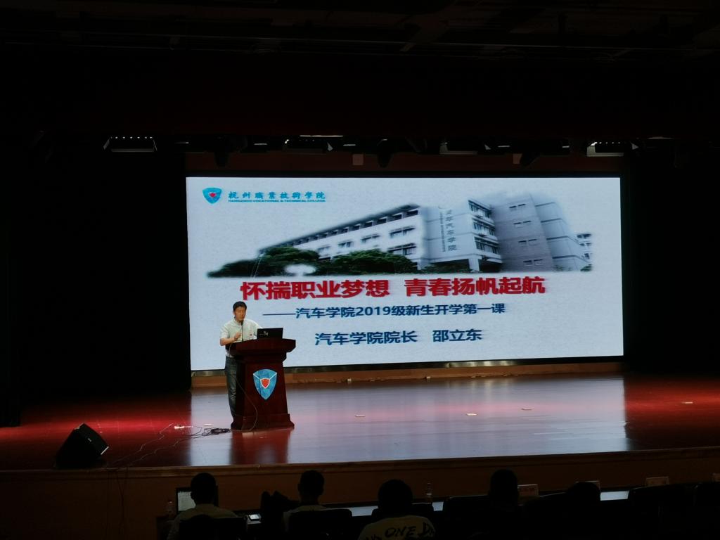 10月9日下午,汽车必赢线路检测3003no1院长邵立东在图书馆报告厅为全体2019级新生讲授了“开学第一课”。纵览汽车行业发展态势、介绍学校和必赢线路检测3003no1发展历程、展示各专业优势和特点,“开学第一课”生动直观地呈现了新生们大学阶段的学习和个人发展路径,表达了对新生走好大学之路的殷切期盼。