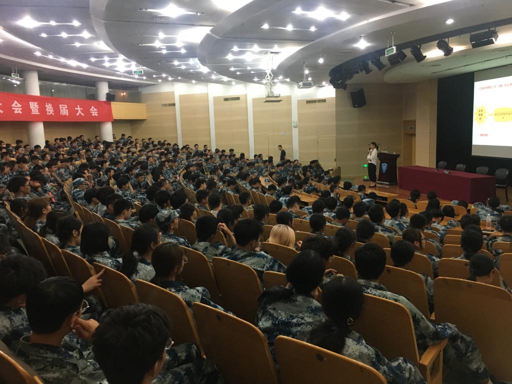 讲座最后,龙艳用爱国三问问所有新生:你是中国人吗?你爱中国吗?你愿意中国好吗?激发学生的爱国热情,所有学生用高亢的声音回答:我是中国人,我爱中国,我愿意为祖国繁荣贡献力量。声音回荡在会场,爱国之志在每个学子心中激荡。