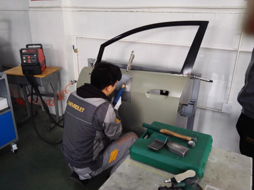 首先张小珏校长带我们参观了该校汽车维修专业实训基地,学校建有整车维修、发动机拆装、汽车钣金修复等实训室以及校内生产性实训基地---汽车维修公司和汽车快修工作室。并现场观摩了整车维修、钣金修复和焊接实践教学活动。
