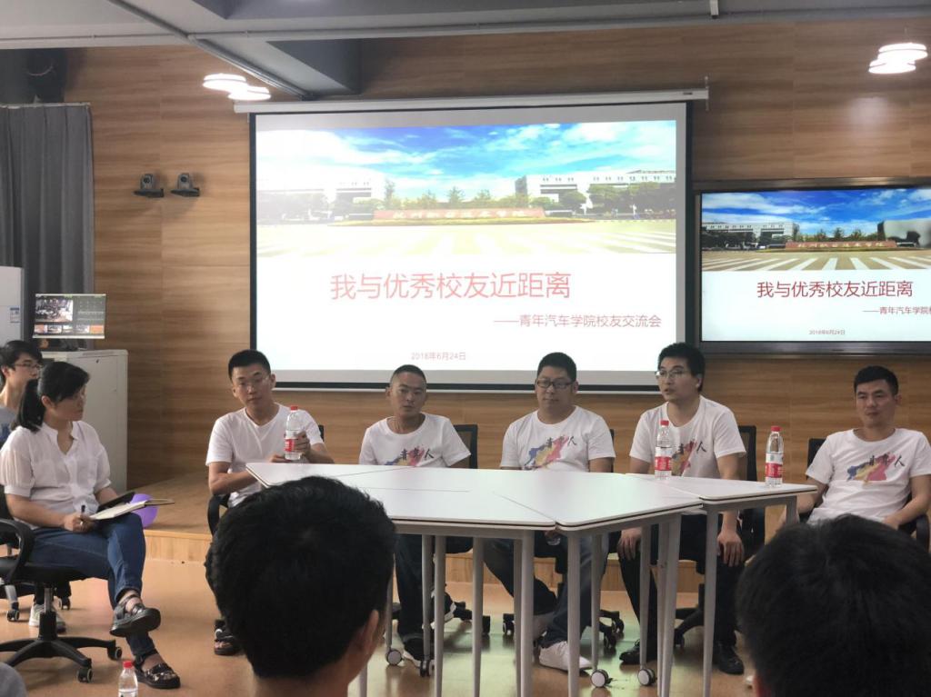 交流会现场座无虚席,几位校友也格外热情地与同学们展开了交流,现场气氛很快活跃起来。主持人的简短介绍一结束,同学们就纷纷主动向各位校友提问。围绕大家所提出的职业发展路径选择、就业压力等方面的问题,校友们的回答格外认真。他们表示,现场同学们所提到的种种困惑,与他们当年在校求学时期所关心的许多问题都是相同或相似的。与同学们详细地谈谈这些年的经历和所积累的经验、说说汽车行业市场的发展状况,相信能够帮助大家更精准定位、更明确目标、更树立自信、更踏实学习。校友们分享的艰苦创业经历、克服困难解决问题的事例令大家感动,校友们对校园生活的愉快回忆和对母校的感激之情令人印象深刻。校友们不约而同地强调学好基础知识、扎实掌握技能本领;正确看待工作待遇与工作经验积累等,更给同学们以激励和鞭策。现场不时响起热烈的掌声。