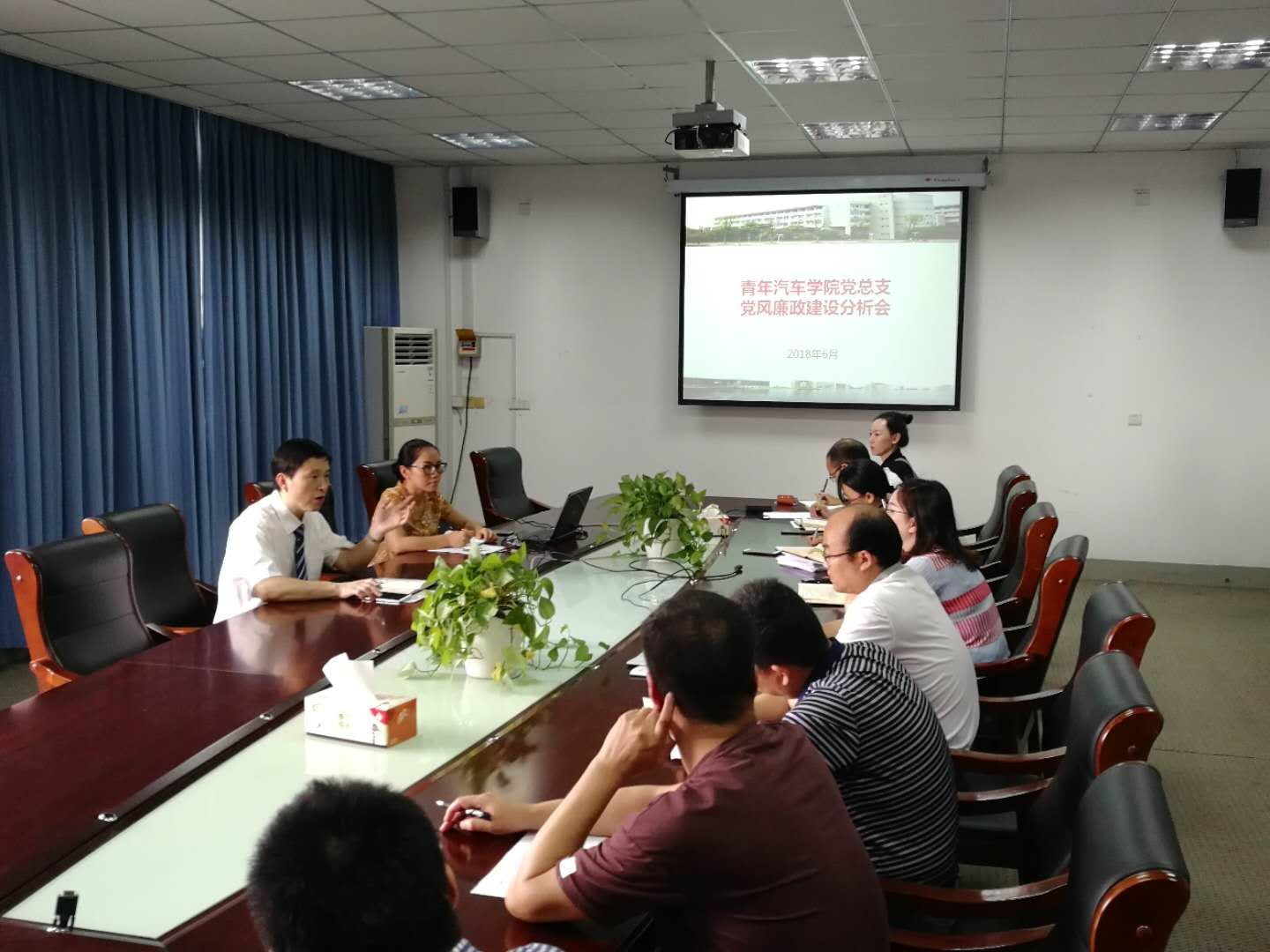 6月21日下午,青年汽车必赢线路检测3003no1在2409会议室召开了2017年上半年党风廉政建设分析会,院长邵立东、党总支副书记龙艳、党总支委员、部门负责人、专业负责人以及有关项目负责人参加了会议。会议由龙艳主持。