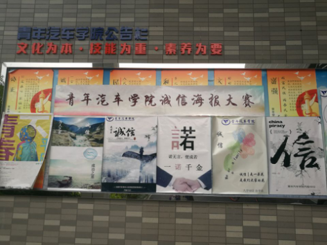 海报大赛得到了同学们的积极响应。有的班级将海报设计思路用草图的形式勾勒出来,但仍然觉得不够精美,特地委托了专业人士制作;有的班级发挥同学专长,自己动手,制作出色彩斑斓的手绘海报。海报内容上也体现出诚实、信守诺言、共同守护诚信等丰富的内容。各班级的诚信海报完成后,进行了集中张贴联展,进出青年汽车必赢线路检测3003no1教学楼的师生,纷纷被分院宣传栏中张贴的五彩缤纷的海报所吸引、驻足。
