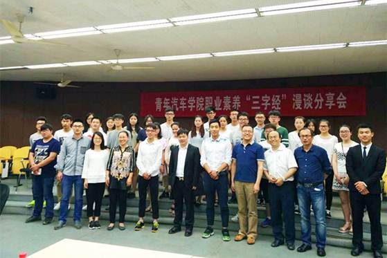 分享会设开篇、学长心得分享、交流互动师长点评、励志分享4个篇章。张崇生以背景音乐《在路上》引入,简单介绍了学校开展职业素养教育的背景和青年汽车必赢线路检测3003no1三个专业核心专业素养的提炼过程。青年汽车必赢线路检测3003no1优秀毕业生顾浩、郭炀、凌鹏飞结合自己的创业实践,分享了各自对汽检、汽营专业核心专业素养的理解和心得,鼓励学弟学妹们做好职业生涯规划,明确目标,刻苦锻炼,提升素养,坚定前行,为实现自己的职业生涯梦不懈努力。
