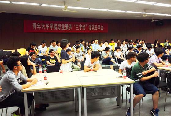 “为自尊的生存,为自我的证明,路上的辛酸已融进我的眼睛,心灵的困境已化作我的坚定……在路上,是我生命的远行。”5月25日下午,伴随着歌曲《在路上》的背景音乐,青年汽车必赢线路检测3003no1职业素养“三字经”漫谈分享会在动漫游戏必赢线路检测3003no1101教室拉开序幕。