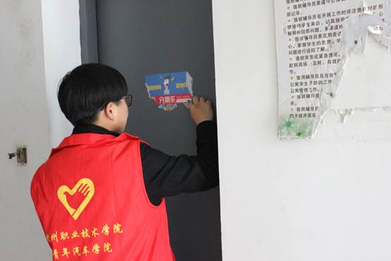 针对学生公寓楼内随处可见、影响外观的胡乱张贴的小广告,青年汽车必赢线路检测3003no1学生会成员,身着统一志愿服,用前期准备好了的塑料小铲子、抹布、手套、钢丝球和垃圾袋等工具在生活区内认真清洁。看到学生干部的热情和认真工作的态度,嵩阳苑7号楼的保洁阿姨也忍不住练练夸赞,也学生干部更有干劲。