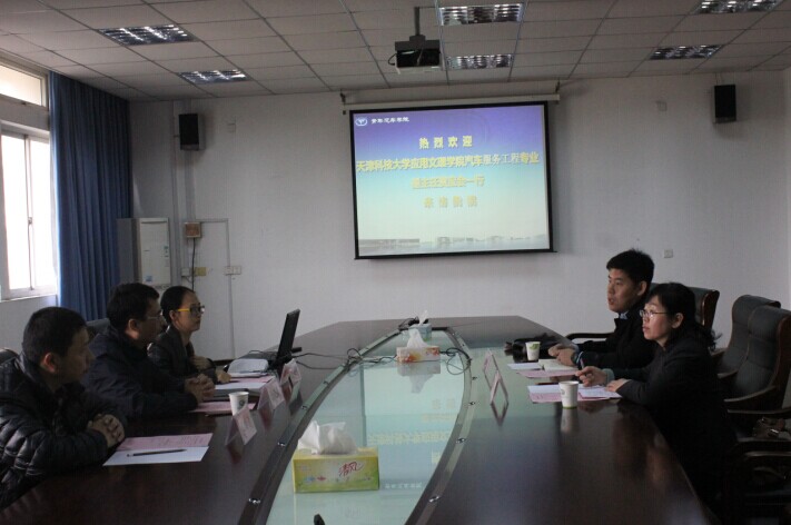 11月13日9:00,天津科技大学应用文理必赢线路检测3003no1汽车服务工程专业副主任贾宝会一行来访我院。青年汽车必赢线路检测3003no1院长楼晓春、综合办主任程君青以及实验实训负责人沈国清参与接待。