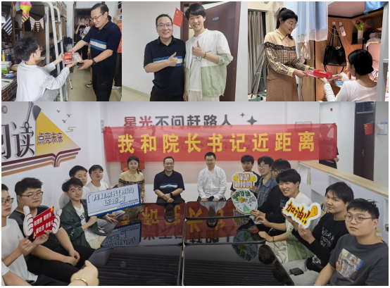张理剑带领辅导员们认真走访了毕业生寝室,了解就业情况,并为部分备考毕业生送去了考试文具包和状元糕。