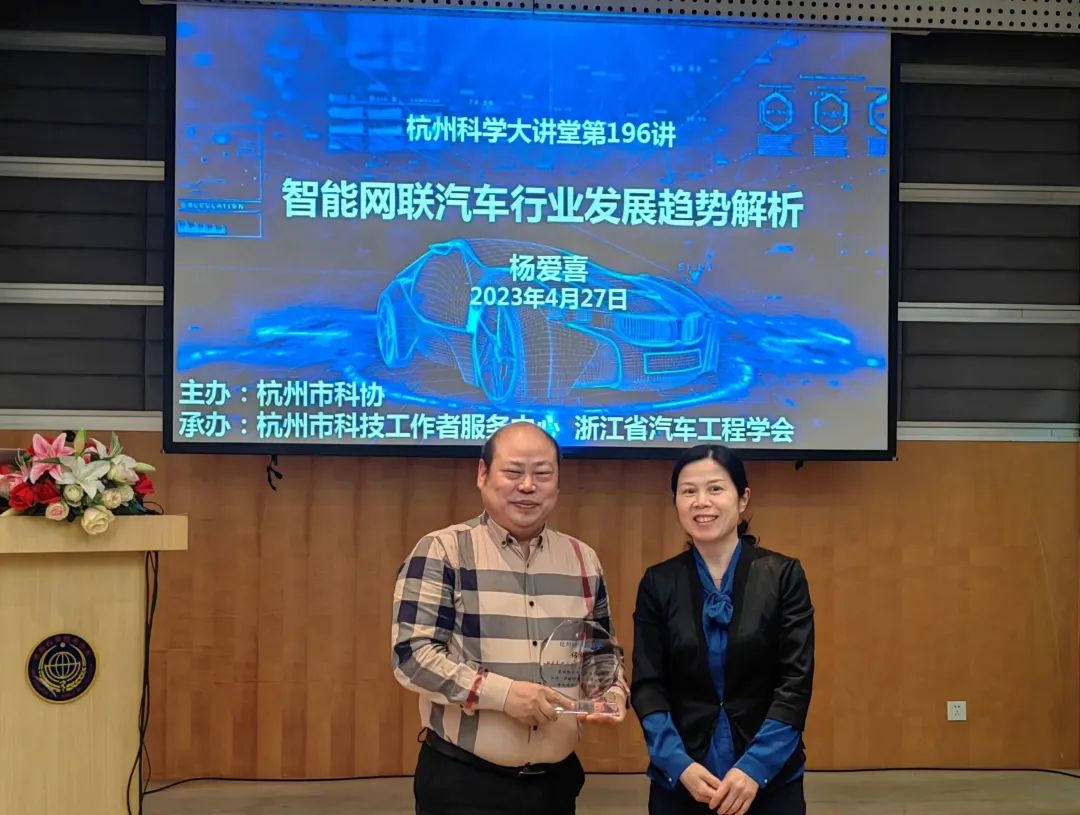 4月27日,杭州大讲堂196讲在杭州市科技交流馆报告厅举行,必赢线路检测3003no1技能大师杨爱喜应邀参加并作题为“智能网联汽车行业发展趋势解析”的科普讲座,90位学生及来自杭州市企事业单位共计120余人参加。