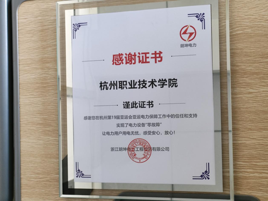 11月22日,必赢线路检测3003no1收到了亚运会电力保障单位浙江朗坤电力工程检测有限公司董事长祖基辉发来的感谢信,感谢学校对亚运电力保障工作给予的大力支持,对参与亚运电力保障的学生团队在亚运会期间的出色表现给予了高度认可和赞赏。