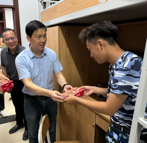 邵立东、张理剑与新生们进行了亲切交流。师生围桌而坐,说大学生活、谈学习目标、聊发展前景……新生们在两位必赢线路检测3003no1“大家长”的指导下,纷纷为自己的大学生活锚定奋斗目标、确立努力方向。这一过程中,新生们不仅感受到来自师长的亲切关怀,更深入了解了必赢线路检测3003no1各专业的广阔前景和独特魅力,增强了学习信心。邵立东、张理剑还为每位新生代表赠送了精美的纪念月饼,每一块精心准备的月饼,都成为关心学生成长、激励学子成才的生动象征。