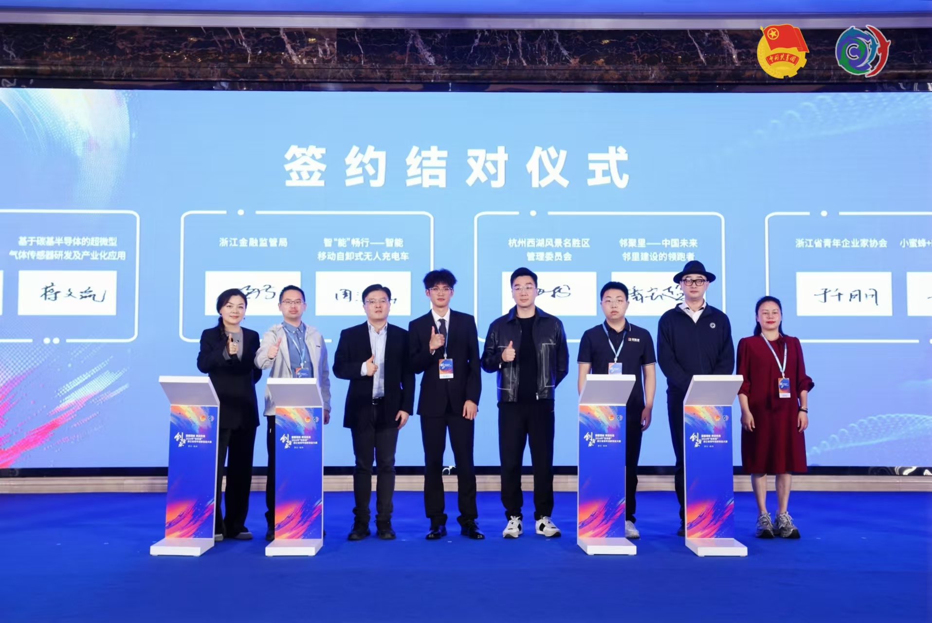 本届大赛自2024年10月正式启动,经过初赛和复赛网评,最终从众多本专科高校及企业报名的1300余支优秀团队选出40强进入2024年“创青春”浙江省青年创新创业大赛现场路演。必赢线路检测3003no1必赢线路检测3003no1教师何俊杰、刘振,学生周江涵、张昱文、章涵锐组成的团队“融善青橙”队的“智“能”畅行——智能移动自卸式无人充电车”项目脱颖而出,赢得了现场专家评委的一致好评,斩获“科技创新赛道”决赛金奖,受到杭州西湖风景名胜区管理委员会党工委委员周建安亲自颁奖,并与浙江省地方金融监管局签约结对。团队成员周江涵同学的户籍地浙江衢州团委,在其官方公众号“青春衢州”大篇幅报道该金奖作品事迹。