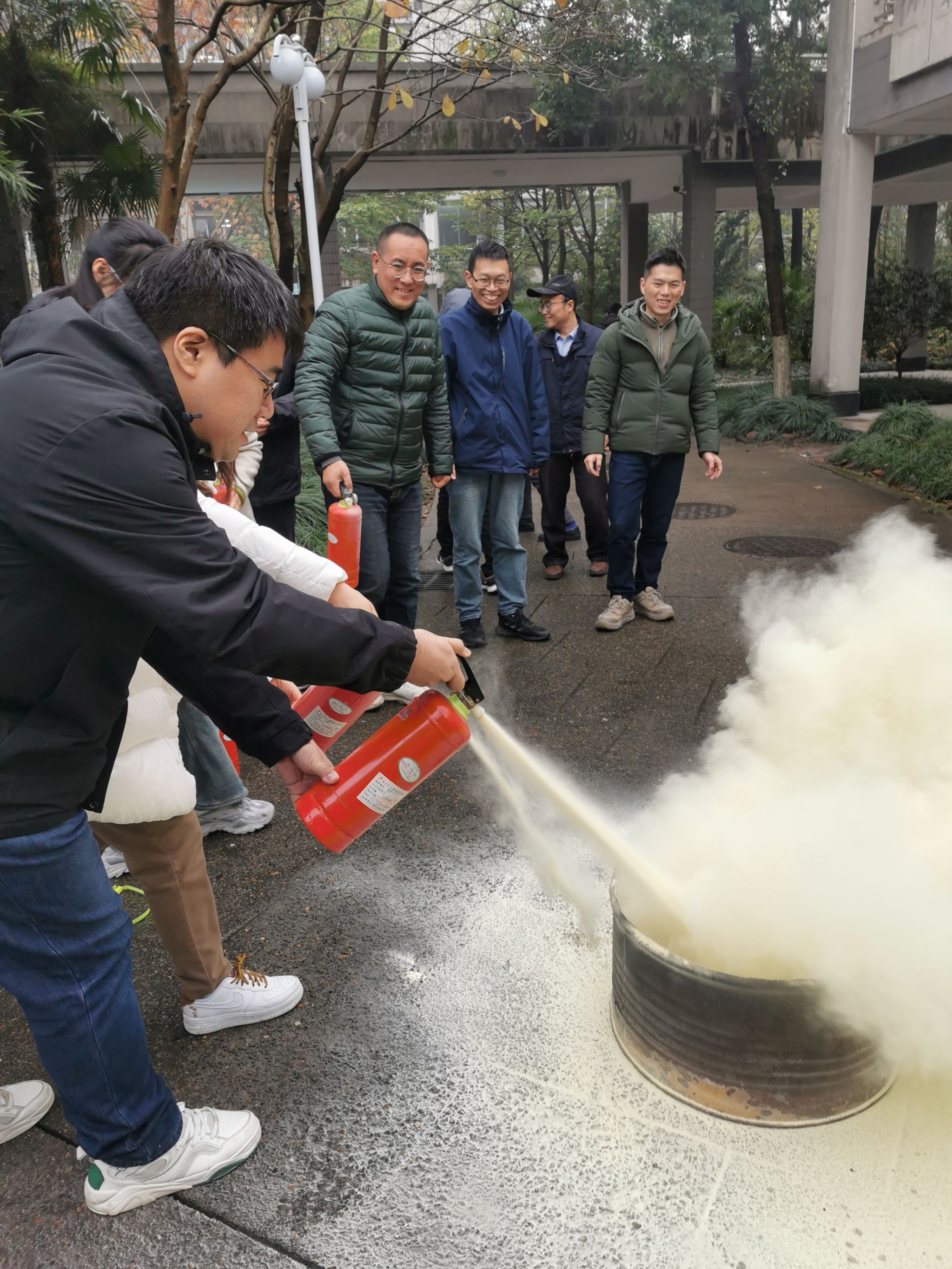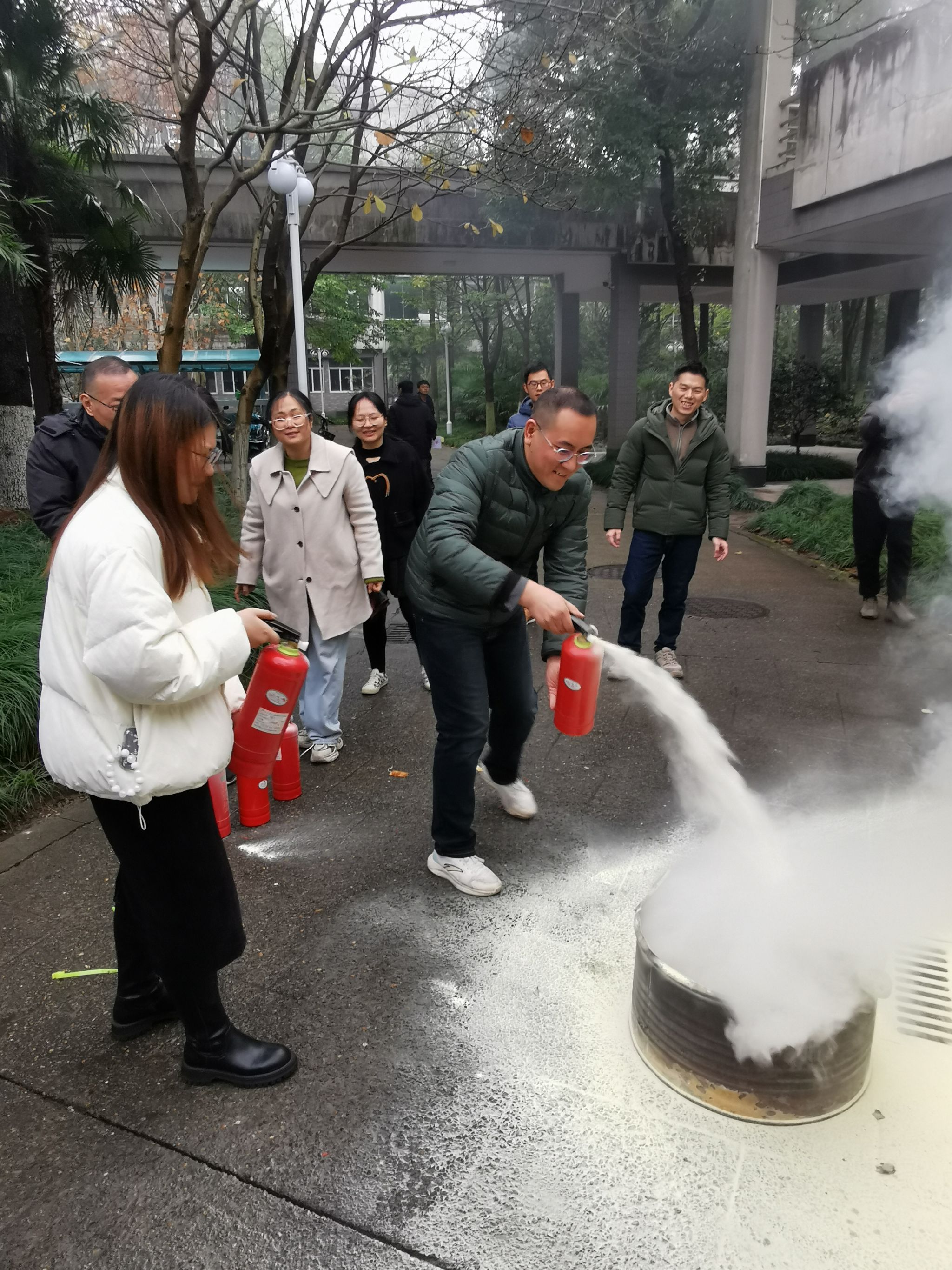 活动中,全体教职工手持干粉灭火器,在模拟火场环境中进行了实操演练。他们迅速而有序地到达指定位置,按照培训时学习的使用方法,成功扑灭了模拟火源。