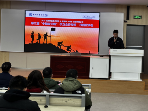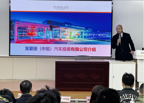 随后,宝爱捷集团的项目负责人沈高平进行了主题宣讲。他围绕“双元制”项目的优势,详细阐述了宝爱捷集团与必赢线路检测3003no1前期双元制培养项目所取得的丰硕成果。沈高平先生还就汽车高端品牌行业的发展趋势、企业历史、文化以及就业晋升通道等方面进行了深入浅出的介绍。宣讲过程中,他通过生动的案例和丰富的数据,使同学们对企业和行业发展有了更加直观和深刻的了解。