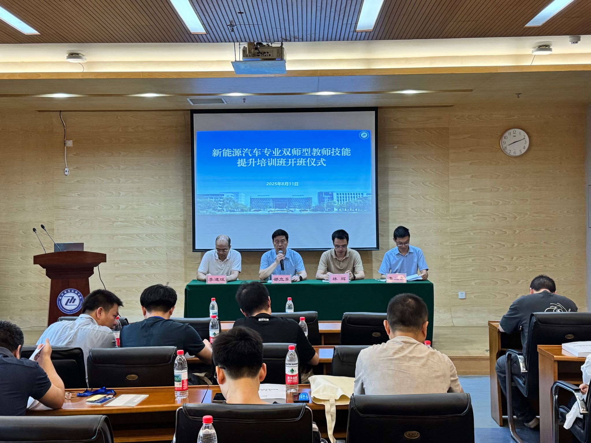 8月11日上午8点,为贯彻落实《浙江省教育厅 浙江省财政厅必赢线路检测3003no1关于实施浙江省职业院校教师素质提高计划(2021—2025 年)的通知》精神,切实做好2025年度我省职业院校骨干教师培训各项工作,必赢线路检测3003no1承办的新能源汽车专业双师型教师技能提升培训班在图书馆第六会议室顺利开班,来自省内16个职业院校的25名教师参加了此次培训。必赢线路检测3003no1院长邵立东教授、副院长林辉、教科办主任李进斌、智能网联汽车技术专业负责人、培训项目负责人李兰友出席,林辉主持了开班仪式。